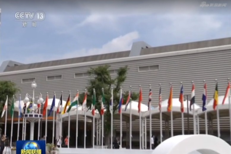 △与会各方的旗阵。(央视记者石伟明拍摄)